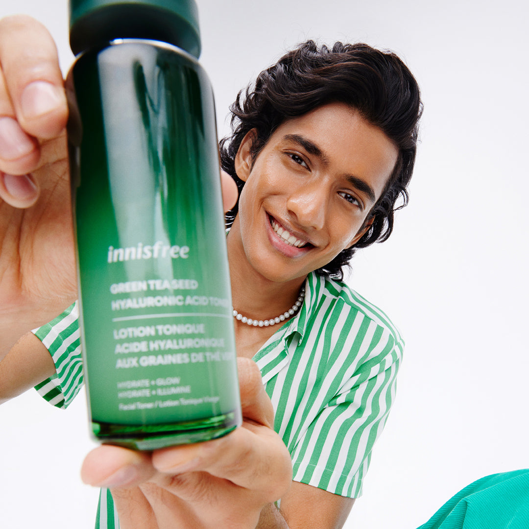 A watery moisturizing toner infused with green tea and hyaluronic acid for deeply hydrated and prepped skin.