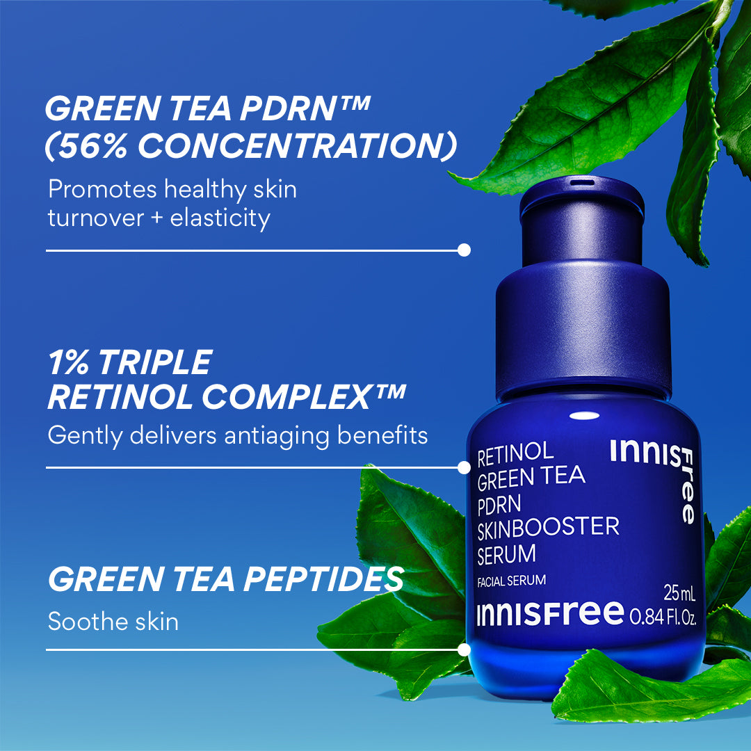 A vegan serum inspired by the K-Beauty PDRN Treatment with 1% Retinol Complex & 56% Green Tea PDRN? to help visibly firm skin?and enhance elasticity.