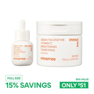 Meet our power duo to brighten skin + fade dark spots. This Korean-powered skincare duo includes full sizes of our Green Tea Enzyme Vitamin C Brightening Serum and Green Tea Enzyme Vitamin C Brightening Toner Pads for endless brightening opportunities.?