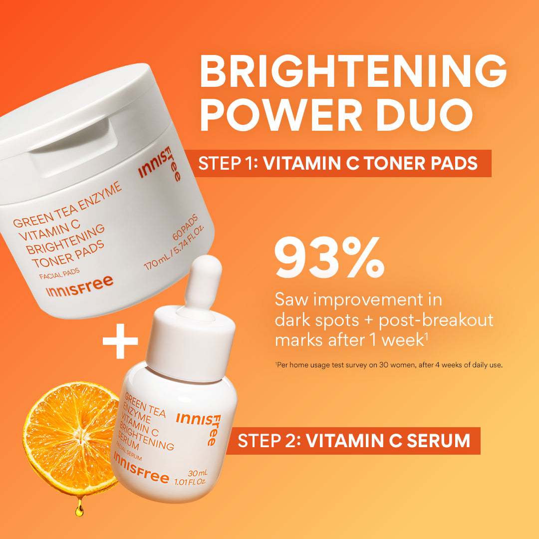 Meet our power duo to brighten skin + fade dark spots. This Korean-powered skincare duo includes full sizes of our Green Tea Enzyme Vitamin C Brightening Serum and Green Tea Enzyme Vitamin C Brightening Toner Pads for endless brightening opportunities.?